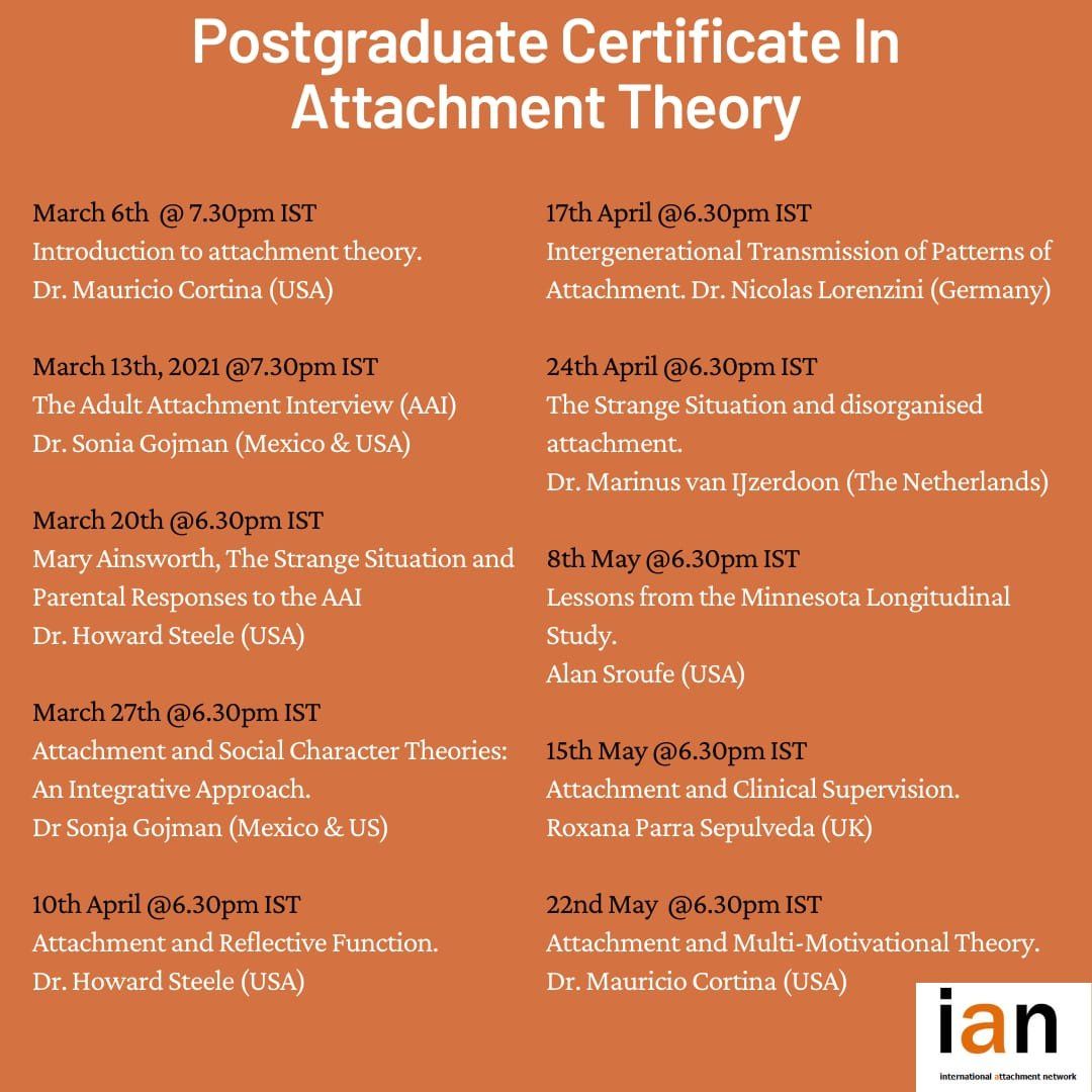 Aprender a evaluar la Entrevista de Apego Adulto empieza con un curso intensivo de dos semanas. Como antecedente importante se inicia con una síntesis de la Teoría del Apego original de John Bowlby, con la descripción de las categorías de apego infantiles de Mary Ainsworth (incluyendo el procedimiento de la Situación Extraña) y sus subsecuentes vínculos con la teoría del apego adulto y la Entrevista de Apego Adulto.